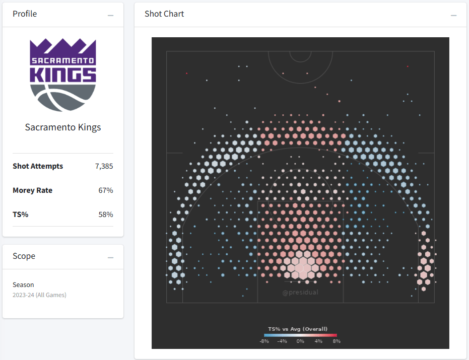 As you can see, we’ve taken that problem area and just eliminated it. There’s no rule that says the hawks can’t shoot from there still, but they’re disincentivized as it’s now abundantly apparent that it’s the lowest value shot on the floor for them. They can continue to shoot from there, but will continue to reap below-average results. This is a relatively tame example.